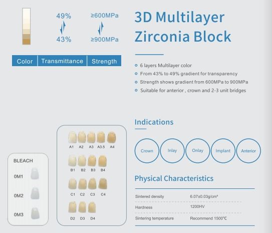 Bloque de Zirconia Dental Multicapa 3D Plus de Yucera